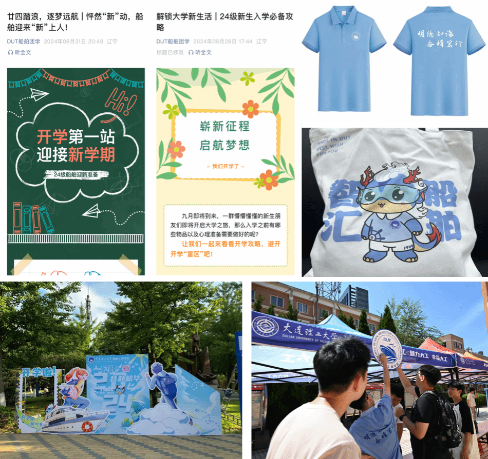在新生报到注册前,学院团学在公众号发布迎新指南以及多篇预热推送,为新生及家长解答问题。学院还为新生精心准备“开学大礼包”,包含船舶工程学院专属院服,定制帆布袋,还有学院吉祥物—“船宝”贴纸及文创周边等一系列精美礼物。秋风未至,团学志愿者顶着烈日,提前布置现场,搭建迎新点,并设置专属打卡点,为迎接新生做足准备,每一位新生都能感受到学院的热情和关怀。