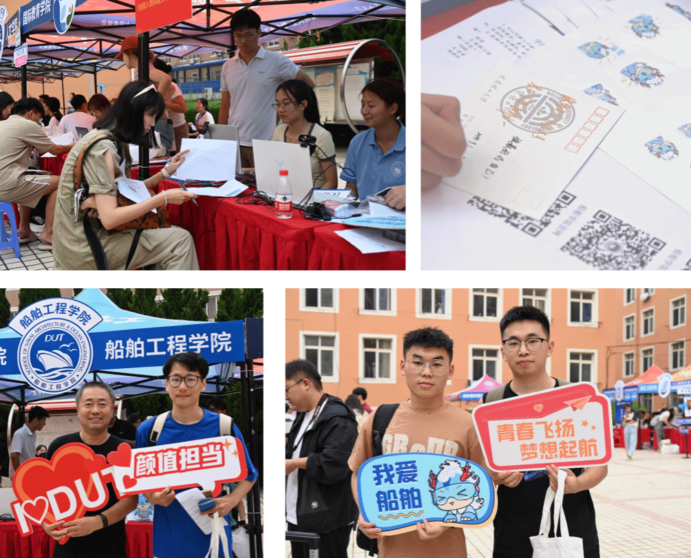 在迎新现场,老师和志愿者早早等候在新生注册点,帮助新生人脸识别,收取档案,为新生发放入学礼包。此外,注册点还设置互动区,新生可在互动区拍摄纪念照打卡,并在互动区提供的大工专属明信片上写下对未来的憧憬和祝愿。尽管天气恶劣,但船舶工程学院全体师生和志愿者时刻准备着,全力以赴保障每一位新同学顺利入学。