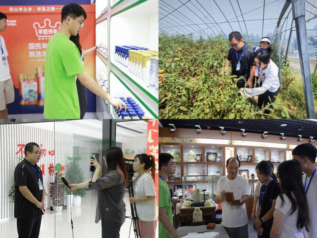 为深入了解乡村产业发展现状,团队开展了一系列产业探访与助农实践活动,通过实地走访特色企业,解密当地资源。在圣唐乳业的现代化生产线上,从鲜奶采集到成品包装的每一个环节都显示着企业对于品质的不懈追求。金耳,这一珍稀食用菌品种,在富平现代农业示范基地得到了规模化、标准化的种植与培育,团队成员穿梭于温室大棚之间,体会现代农业科技的力量。走出企业,团队在农业发展的典范之地——安村镇支尚村听取了当地农业发展的先进经验,与农民朋友并肩劳作,体验田间地头的辛勤与收获。步入蓝田玉的加工车间,一块块温润的玉石在匠人的精心雕琢下焕发新生。实践团成员深入洞悉渭南地区的特色产业与资源优势,积极参与到农业劳作与产品推广活动中,为乡村振兴注入了新的动能。