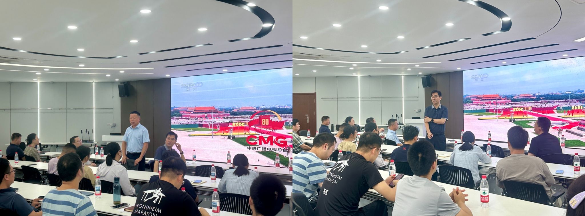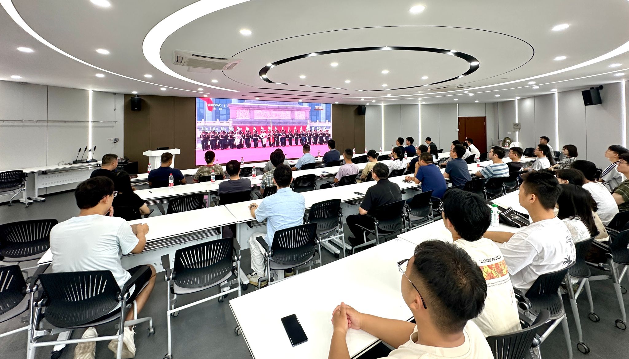 9月3日上午,为深切缅怀革命先烈,弘扬伟大抗战精神,学院党委组织船舶教工第一党支部、船舶教工第二党支部及船舶水动力硕士生第二党支部师生党员于海涵楼313会议室集中收看了纪念中国人民抗日战争暨世界反法西斯战争胜利80周年大会现场直播,共同感受历史与时代的伟大交汇。