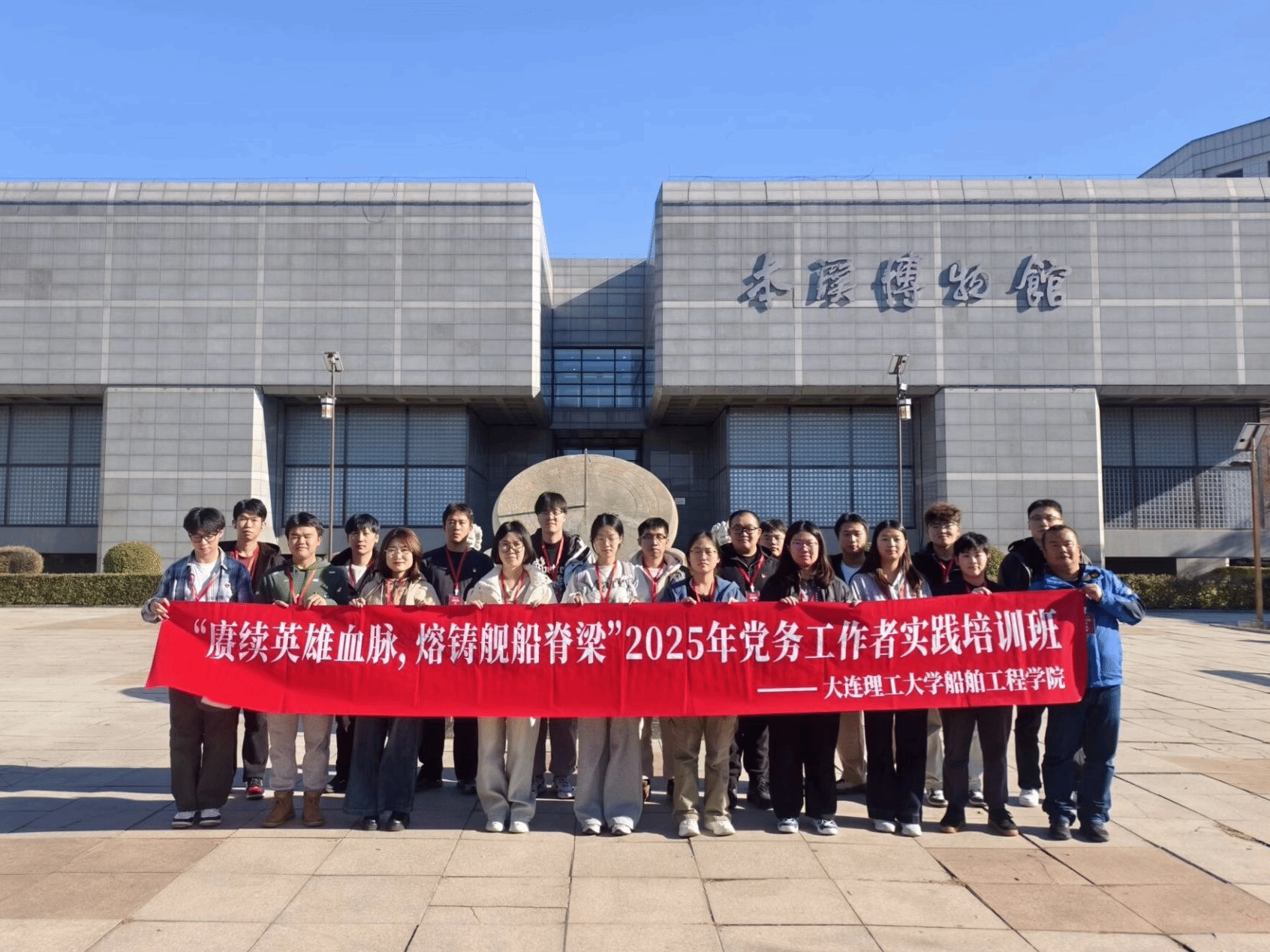 2025年是中国人民抗日战争暨世界反法西斯战争胜利80周年和中国人民志愿军抗美援朝出国作战75周年。为进一步强化党支部书记与优秀学生党员干部的党性修养,助力党员骨干在回望历史中凝聚力量,为新时代船舶事业发展书写崭新篇章,船舶工程学院于10月31日至11月2日组织师生党务工作者赴辽宁本溪、丹东开展“赓续英雄血脉,熔铸舰船脊梁”党务工作者实践培训,通过实地探访、现场教学与专题研讨等环节,引导学员在历史与现实的交融中汲取奋进力量。