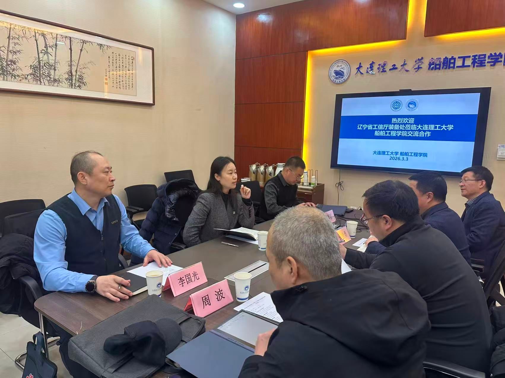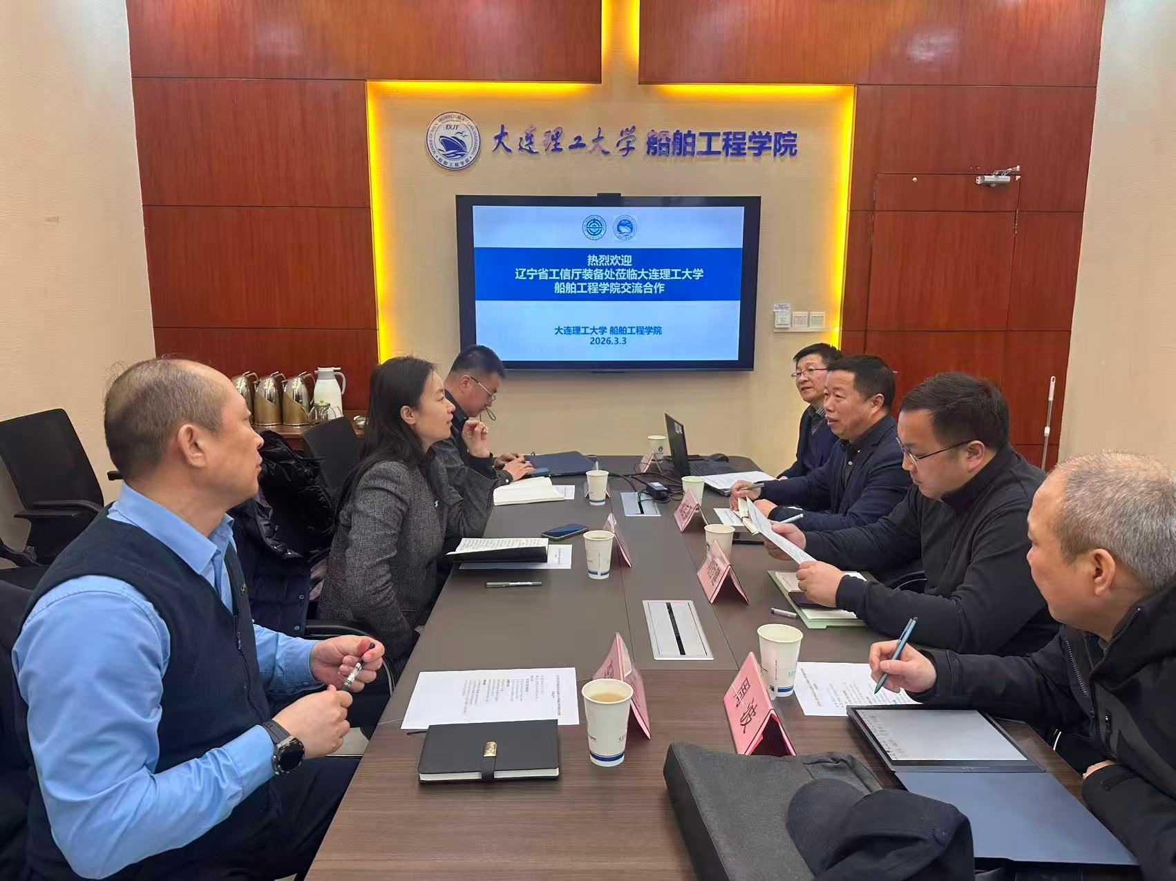 2026年3月3日,辽宁省工信厅装备处与大连理工大学船舶工程学院交流合作座谈会在大连理工大学船池楼107会议室顺利举行。本次会议双方就成立辽宁船舶与海工装备新型工业化院相关事宜进行商讨。