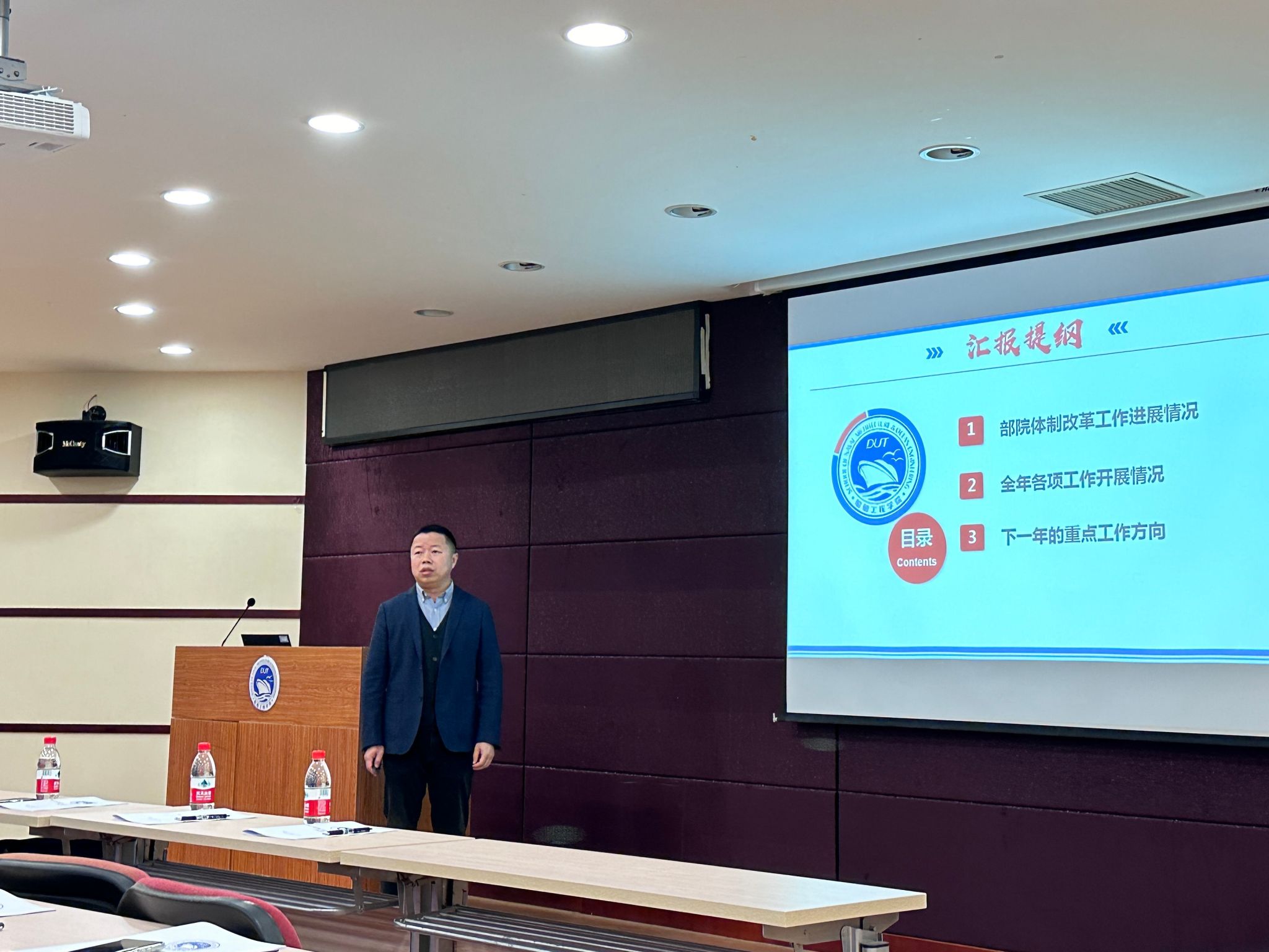 为深入贯彻落实学校第十四次党代会精神和“五个坚定不移”工作要求,紧紧抓住学校党委深化传统优势学科部院体制改革契机,凝心聚力推升学院发展新高度,11月22日下午,船舶工程学院召开全体教职工大会,成立学院工会和学术分委员会,进行学院领导班子年度述职考评。