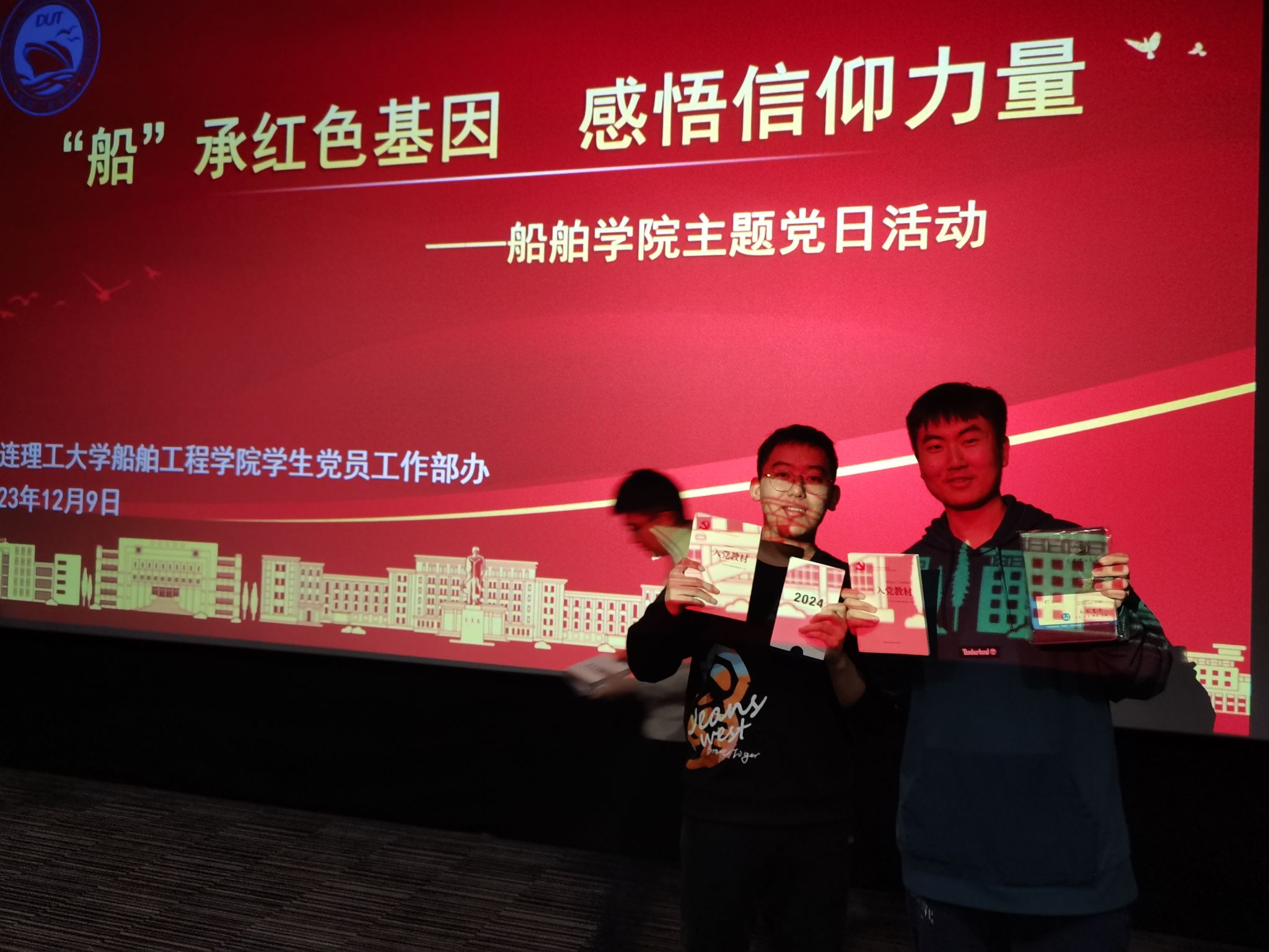 观影现场,学院党委还为同学们提前准备了《入党教材》书籍等一系列精美且富有意义的小礼品。精选的书籍体现了对思想启迪和理论知识丰富的重视,带有学校logo的校徽等纪念品更象征着对学校精神和文化的传承。此外,为增添观影活动的趣味性,党员工作部干部成员特别安排了一个抽奖环节,幸运的中奖同学通过答题可以获得精美的小礼品。这一环节不仅增加了活动的互动性和乐趣,也让所有同学都带着满满的收获和愉快的心情离开。随着这部感人至深的影片的结束,同学们共同参与了一个特别的合影留念环节。在这个环节中,大家用镜头定格了这个特殊时刻,捕捉下了彼此间的笑容和电影带来的感动,留下了难忘的集体记忆。