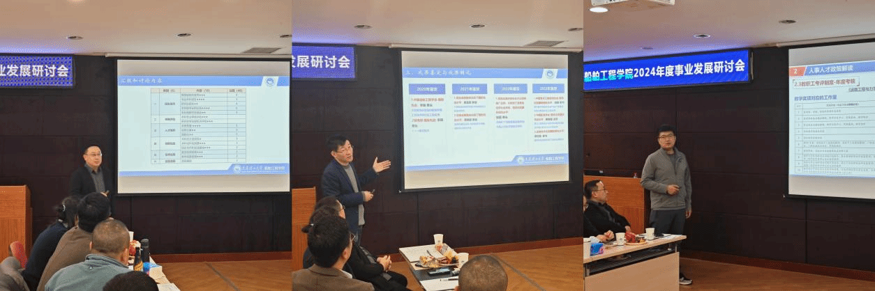 为深入落实学校第十四次党代会精神,推动学院各项工作高质量发展,为学校一流大学建设“加速跑”贡献更大力量,1月10日至11日,船舶工程学院召开事业发展研讨会,深入分析学院发展的困难问题,明确2024的主要工作目标和重点任务。学院全体班子成员、各研究所负责人、全体正高级教师和机关人员参加会议,会议由学院院长张桂勇主持。