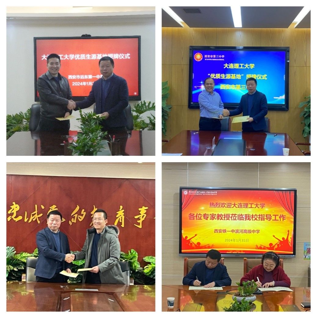 张桂勇院长代表学校与西安市远东第一中学、西安市第三中学、西安电子科技大学附属中学、西安铁一中滨河学校签订优秀生源基地校协议并举行授牌仪式,各所中学的校领导均对我校到访表示欢迎,并就未来合作展开深入讨论与交流。