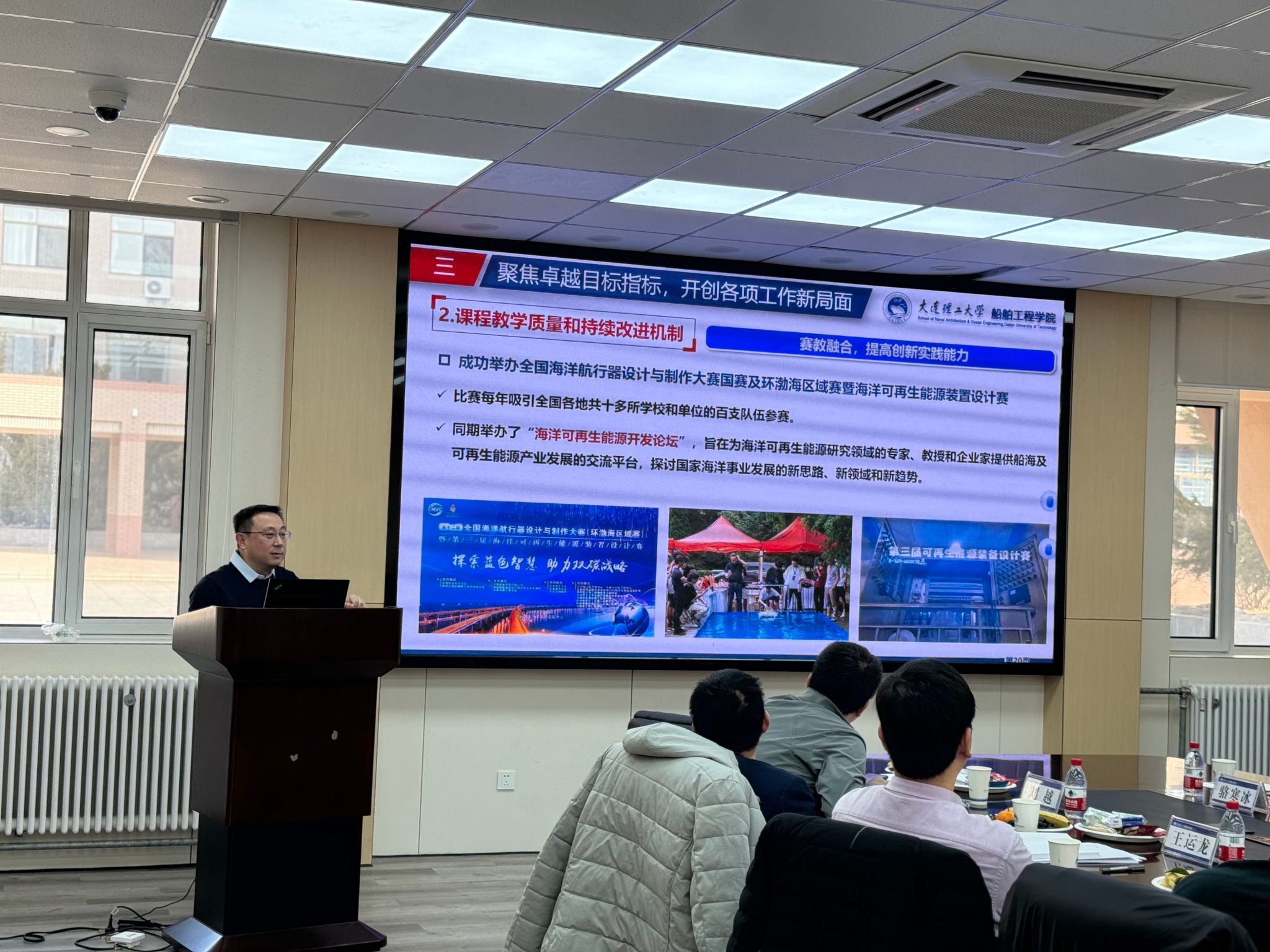 评审专家组由上海交通大学廖世俊教授、武汉理工大学李廷秋教授、哈尔滨工程大学康庄教授、大连海事大学张佳宁教授、华中科技大学向先波教授、西北工业大学曾向阳教授、天津大学骆寒冰副研究员等7位专家组成。我校培养处副处长刘旭、学科建设办公室孙欢伟、我院院长张桂勇教授、书记刘刚教授、副书记副院长刘越老师、副院长汪骥教授、王运龙教授、院长助理崔洪宇、刘松、姜宜辰、张之凡等参加此次会议。