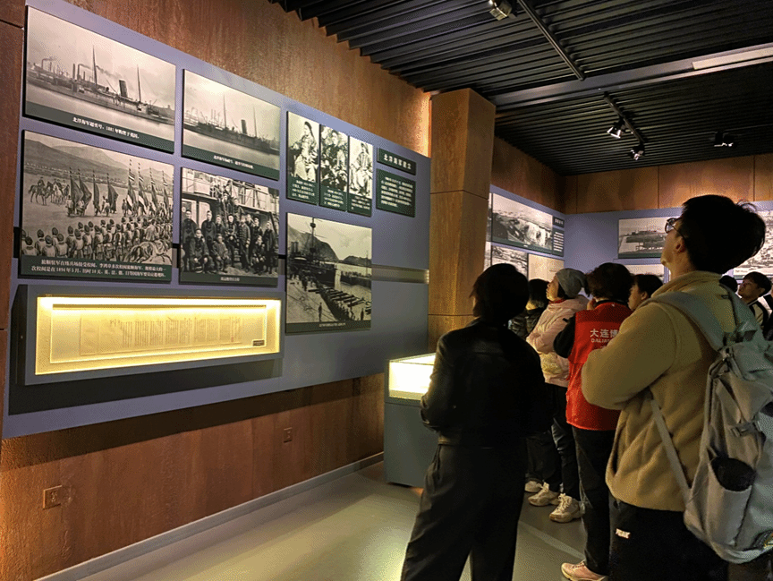 在参观过程中,大家仔细地观看展品,认真地听着讲解员的介绍,被大连从甲午战争到近代发展的近百年的历史变迁所震撼。作为船舶专业的学子,“旅大的开发与海防建设”以及“中日甲午战争中的旅大”这两个单元最能引起共鸣。北洋舰队的全面溃败,标志着清朝海上力量的彻底崩溃。这场战争强烈地震撼了中国社会的觉醒,促使中国人开始深刻反思国家的未来和民族的命运。