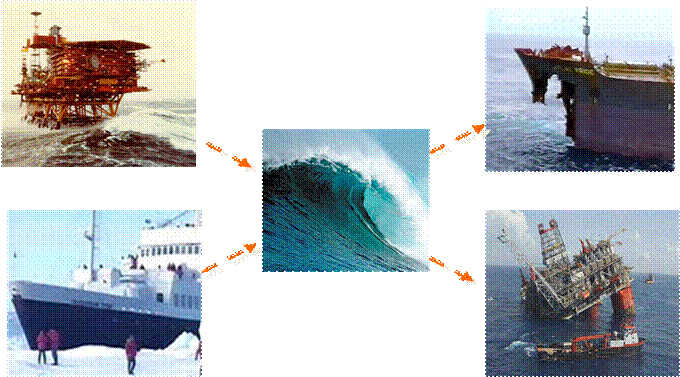 b.流载荷、风载荷、浪载荷作用下结构的动响应研究