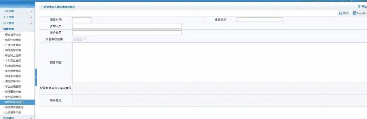 4、参加学术活动情况(24级以前要求:主讲报告5次,听报告24次,在研究生管理系统“学术活动录入”,其中要录入一条完整的学术活动,如下图)