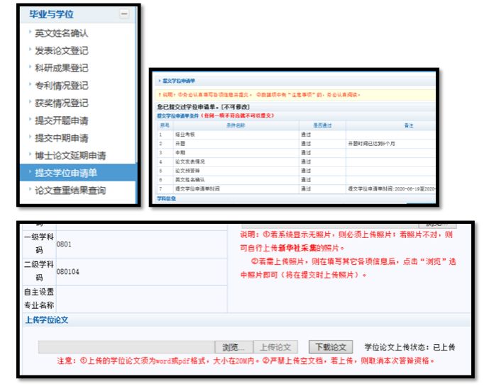 学位申请单没有照片的,在学信网下载后上传,提交学位申请单后,教务老师才能审核答辩申请材料。