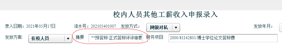 摘要处请务必写明“***博士预答辩还是正式答辩评审费”