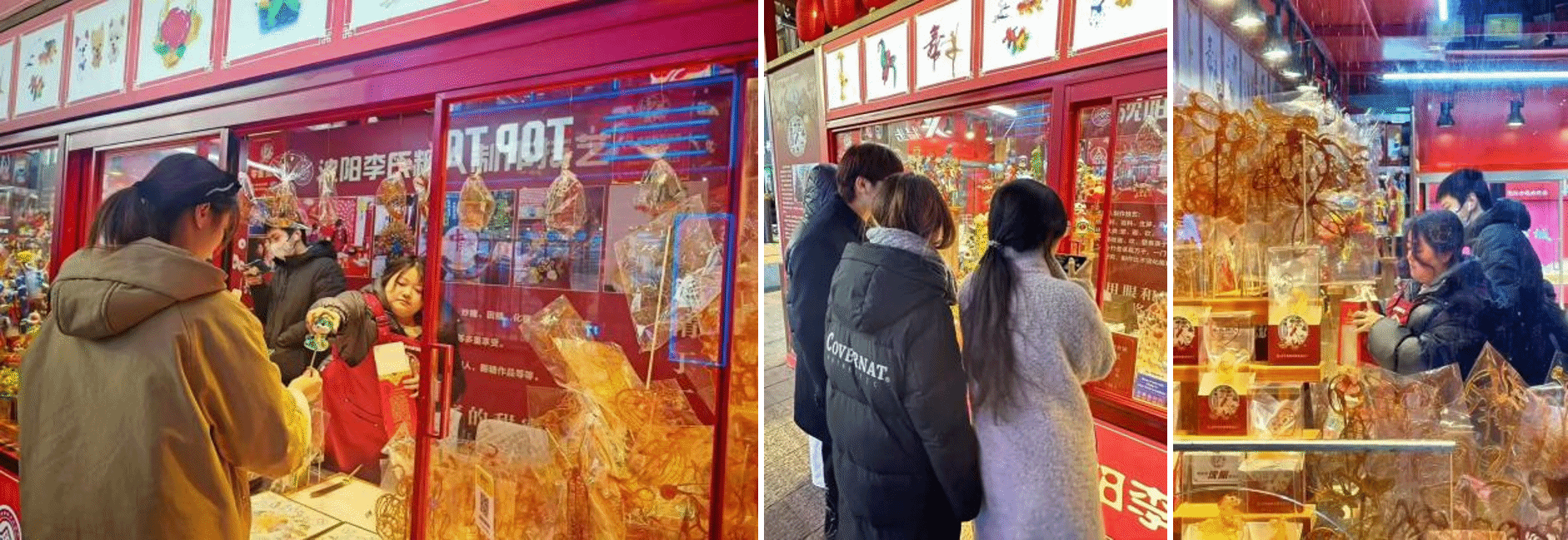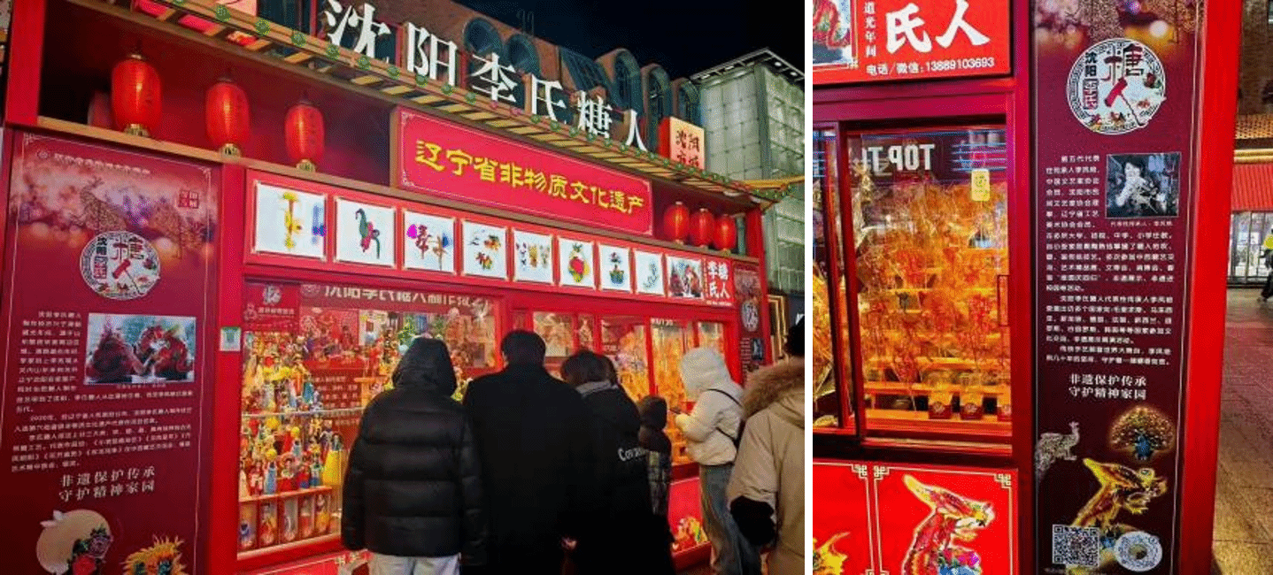 糖人技艺始于宋代,初为祭祀所用的“戏剧糖果”,明清发展为吹糖、画糖、塑糖三种形式。李氏糖人作为辽宁省级非遗,以麦芽糖为材,经熬糖、吹塑、点睛等工序,将糖稀化为龙凤、生肖等灵动造型,兼具观赏与食用价值,承载着代代国人甜蜜记忆。