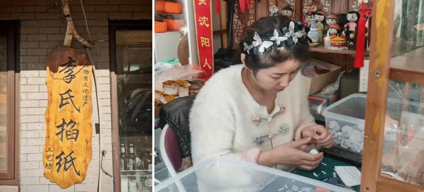 在沈阳李氏掐纸工作室,一张60克普通打印纸经李雪之手,化作一个个精美又极具生命力的作品。李雪是国家二级工艺师,拥有一手精湛手艺的她收获了很多尊敬的头衔与奖项,其作品《千里江山图》掐纸长卷获“辽博文创一等奖”,并被北京民俗博物馆收藏。她创新开发掐纸灯具、首饰等现代文创,将传统技艺融入日常生活。李雪曾参与拍摄《非遗里的中国》辽宁篇,也为大连理工大学70周年校庆创作掐纸贺礼,与我校拥有不解之缘。0.2毫米的褶皱误差红线,四代匠人用指尖丈量。
