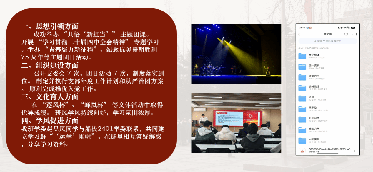 创新学习方式、丰富引领载体,船卓越2301团支部聚焦思想建设与专业成长,以丰富形式推动理论学习深入人心。