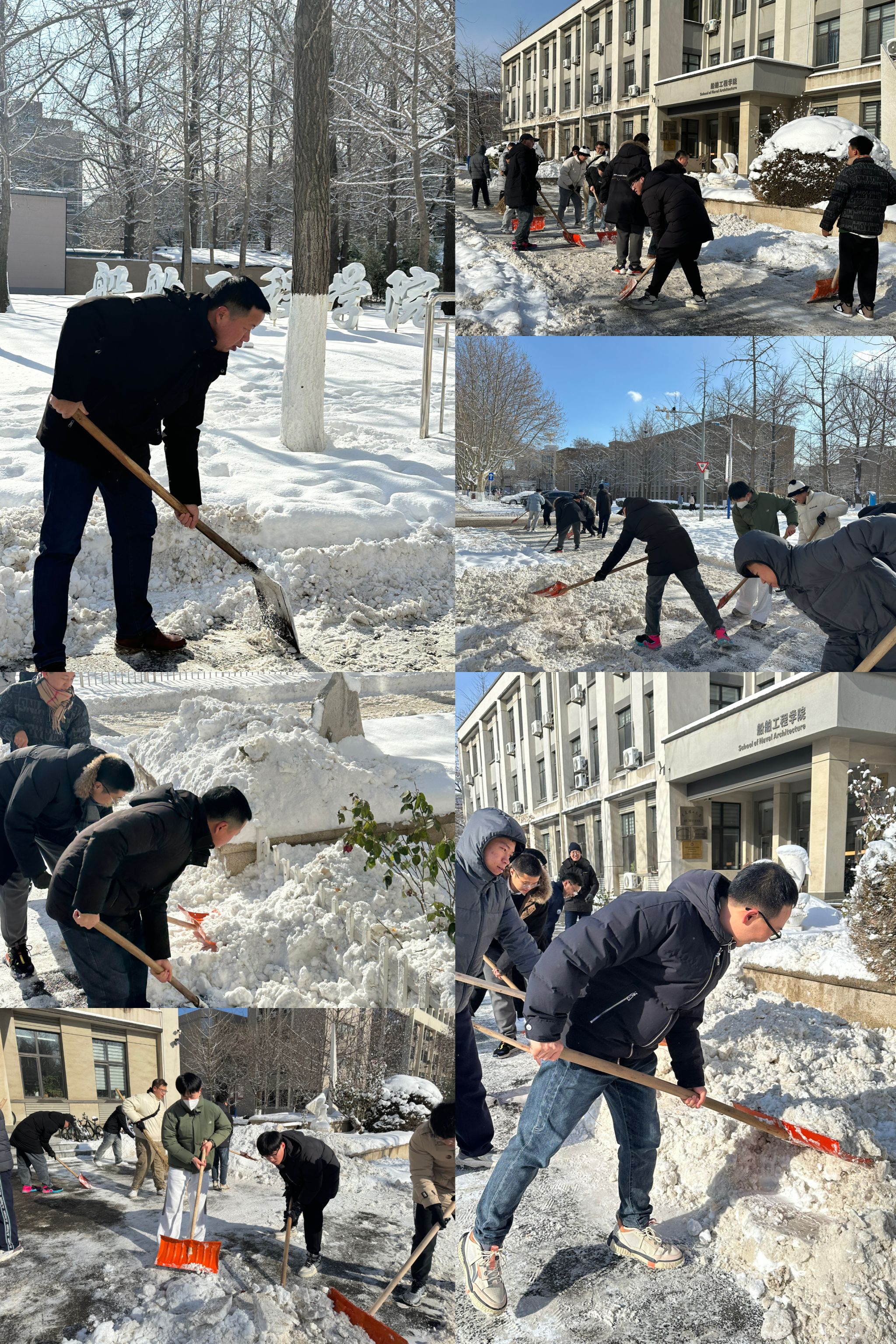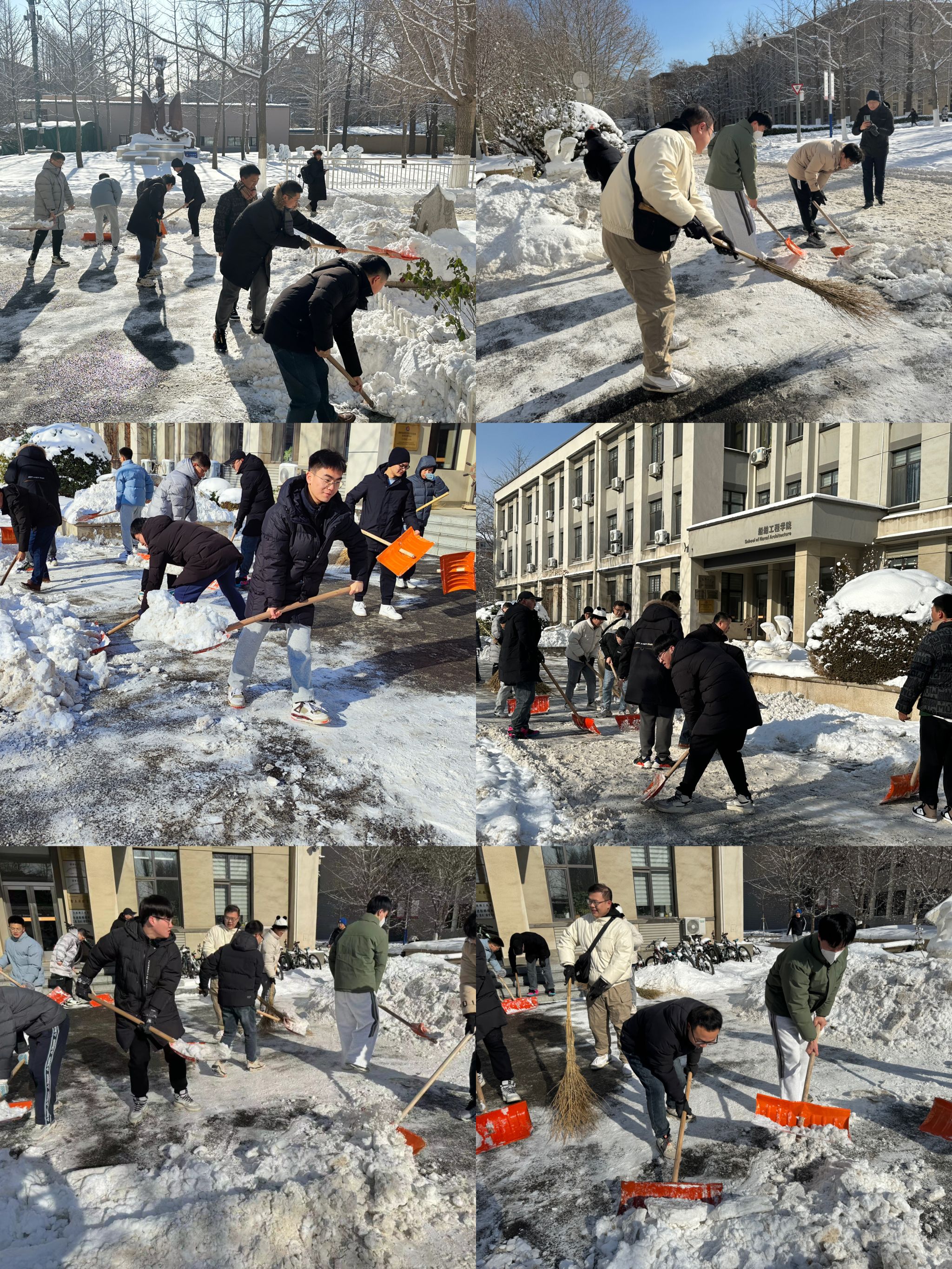 迎风踏雪,扫雪情暖人心。接连几天的大雪为校园披上银装,为同学们带来了美丽的景色与欢乐的时光,但与此同时也导致道路上的积雪越来越厚,师生通行变得异常艰难,影响了教师线下科研教学和学生日常学习工作的正常开展。