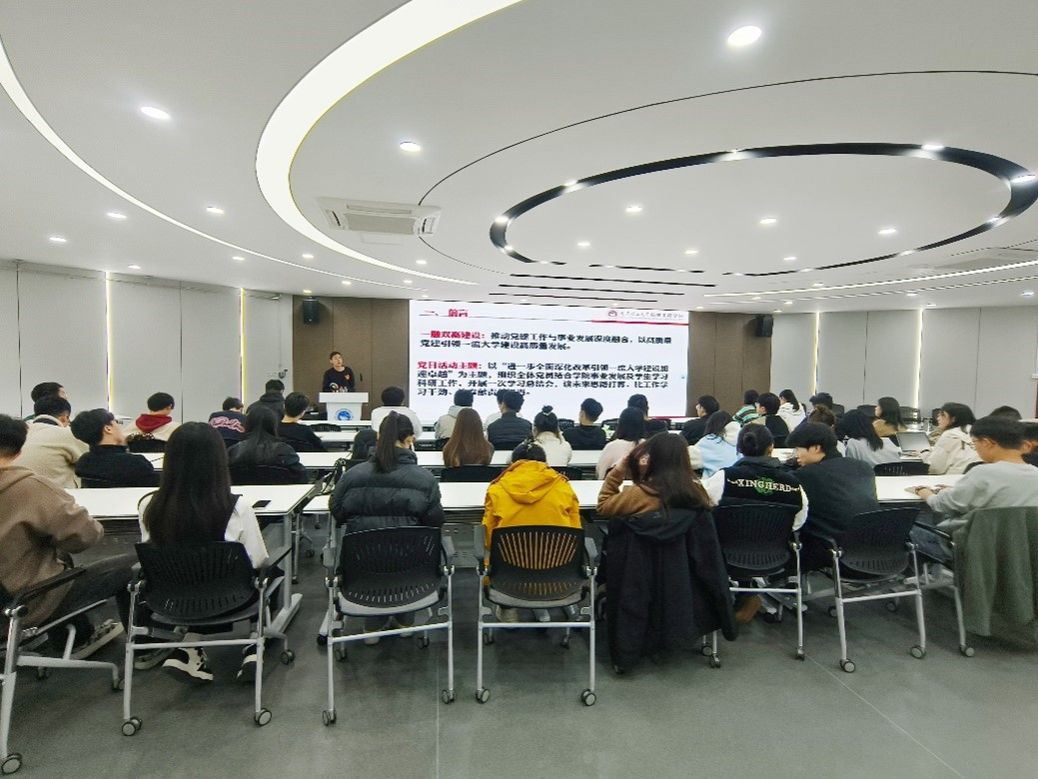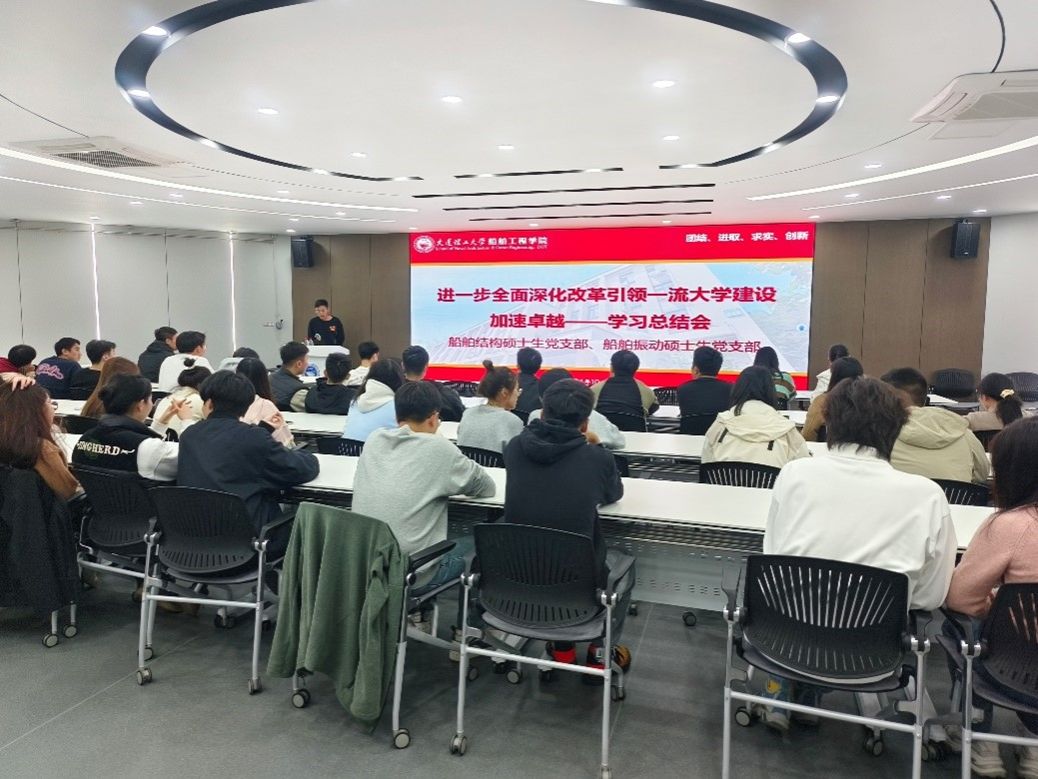 为深入学习贯彻习近平新时代中国特色社会主义思想,进一步学习党的二十大精神,响应学院党委认真落实学校第十四次党代会精神,推动党建工作与事业发展深度融合,以高质量党建引领一流大学建设高质量发展,2024年10月28日18:00,船舶工程学院船舶结构硕士生党支部联合船舶振动硕士生党支部在海涵楼313召开了党员大会,以“进一步全面深化改革引领一流大学建设加速卓越”——学习总结会为主题开展了党日活动。参加本次会议的人员为船舶工程学院船舶结构硕士生党支部成员、船舶振动硕士生党支部成员,特别邀请了学院领导孙波老师参与批评指导。