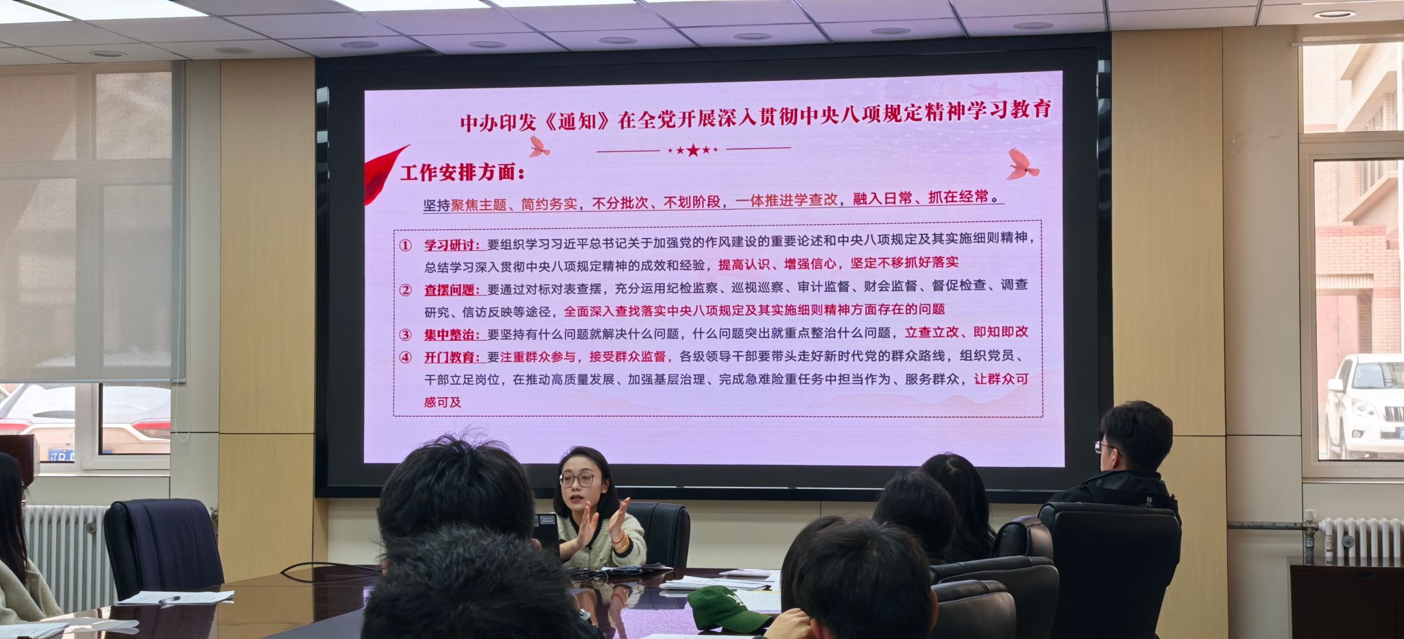 随后,王老师围绕“深入贯彻中央八项规定精神学习教育”讲授了专题党课。详细阐述了中央八项规定及其实施细则精神的内涵,并结合具体案例分析,进一步深化了大家对中央八项规定精神的理解。王老师指出,深入贯彻中央八项规定精神,不仅是对党风廉政建设的要求,也是每个党员必须时刻遵守的纪律要求,各位拟发展人员不仅要在思想上做到与党保持一致,更要在日常行为中严格自律,做到为人民服务、为社会树立正面典范。