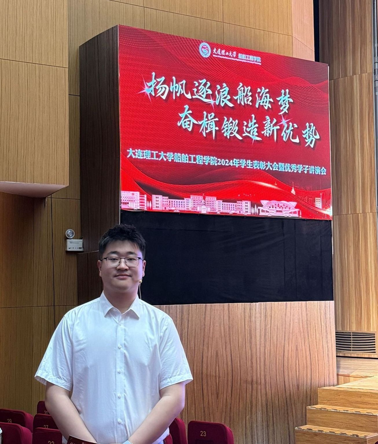 在科研之路上,张高魁秉持严谨治学态度与刻苦钻研精神,认真落实导师布置的各项科研任务,积极投身科研项目研究工作。针对船舶工程领域关键技术问题,他深入开展理论分析与实验研究,付出的不懈努力收获了丰硕成果。研一学年,研究生课程加权成绩 90.3 分,并参与完成三项课题,在竞赛中四次获得名次,完成五次数值仿真与三次物理模型试验,撰写项目课题报告超十份。不仅如此,他连续两年担任《船舶与海洋工程流体力学》课程助教,协助完成 48 次实验教学,批改 1300 余份作业,开展 10 余次课后答疑,为学院本科生教育助力。